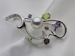 あこや真珠9.5ミリの超大珠を1個使用したシルバー材のデザインブローチ。珠の大きさに存在感を感じてもらえるはず。ショップオープン記念価格で、1万円ぽっきりとさせていただきました。